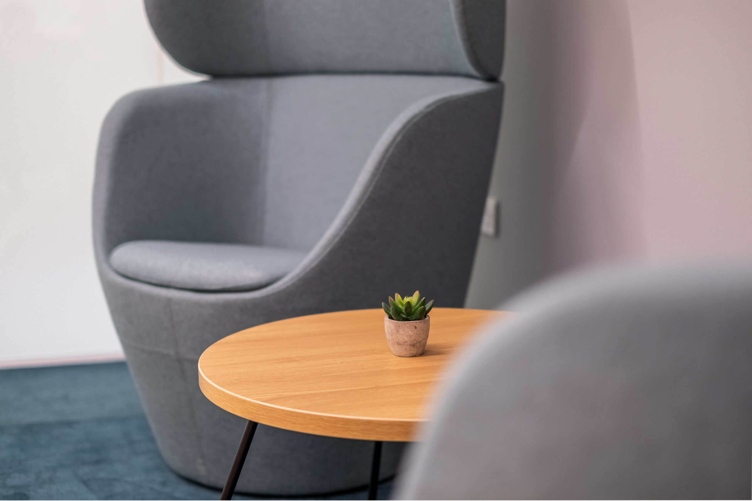 Un nouvel espace de rafraîchissement et de réunion a été ajouté à l'entrée du deuxième étage, où le personnel et les visiteurs sont accueillis. La salle de réunion du troisième étage a été rafraîchie avec un nouveau revêtement de sol et une acoustique améliorée pour créer un environnement plus concentré.
