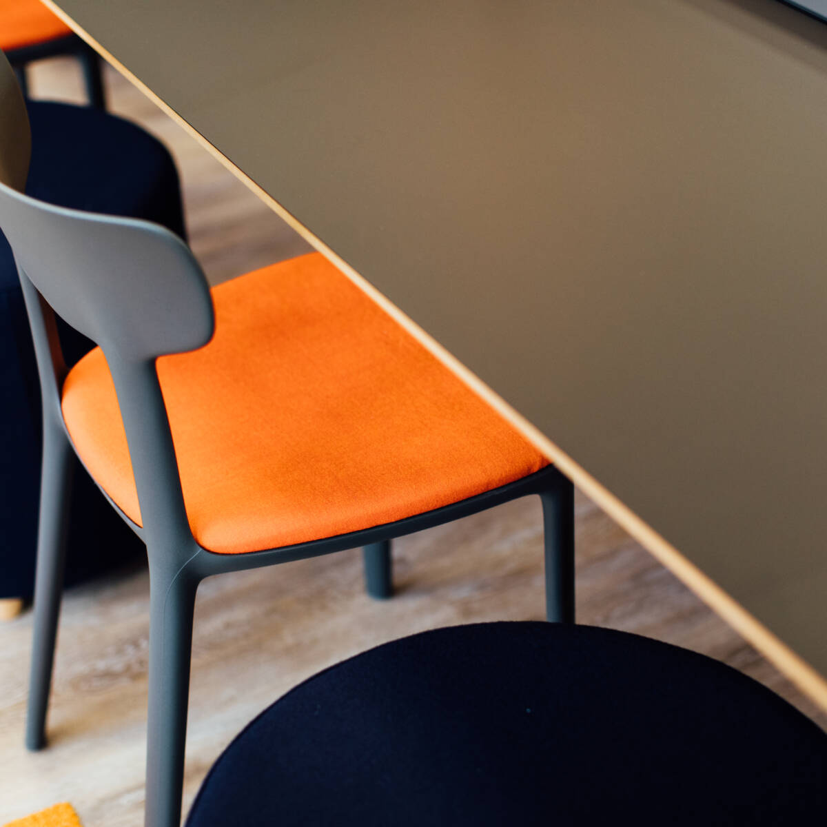 Plusieurs salles de réunion ont été intégrées à la conception afin de créer des espaces où des questions confidentielles peuvent être discutées. Les salles "The Valet" et "Boomerang" ont été décorées avec du papier peint paysager et des tons automnaux pour créer des espaces de réunion apaisants. Hygge des chaises à bascule et des poufs ont été spécifiés dans une pièce pour une réunion informelle vibrante et Rollie des chaises et des tables dans un autre pour un espace de réunion plus formel. Dixi Des chaises à dossier haut et tubulaires ont été spécifiées pour créer des zones de réunion et d'attente.