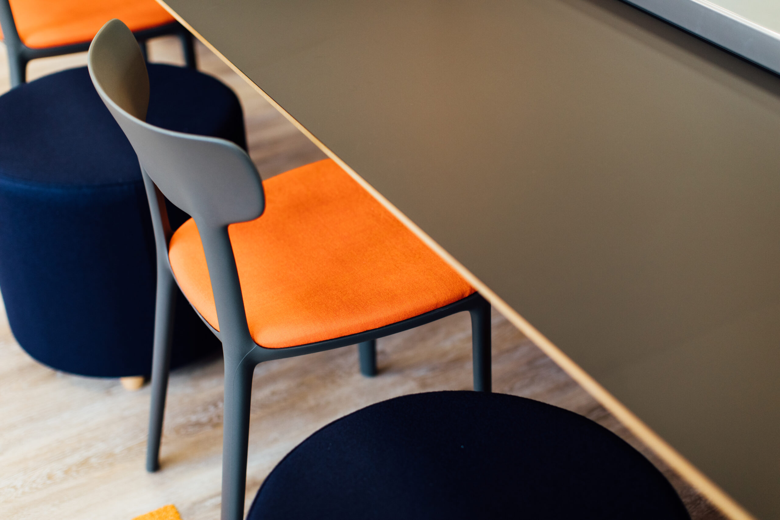 ‘Open’ Collaboration zones were created to allow for agile working and so that visiting members of staff could utilise the space as hot desking. Connection Co.table was specified to support this area with its central power rail allowing users multiple connectivity points and central lighting. The Co.table was suited with Canova chairs in vibrant branded colours.