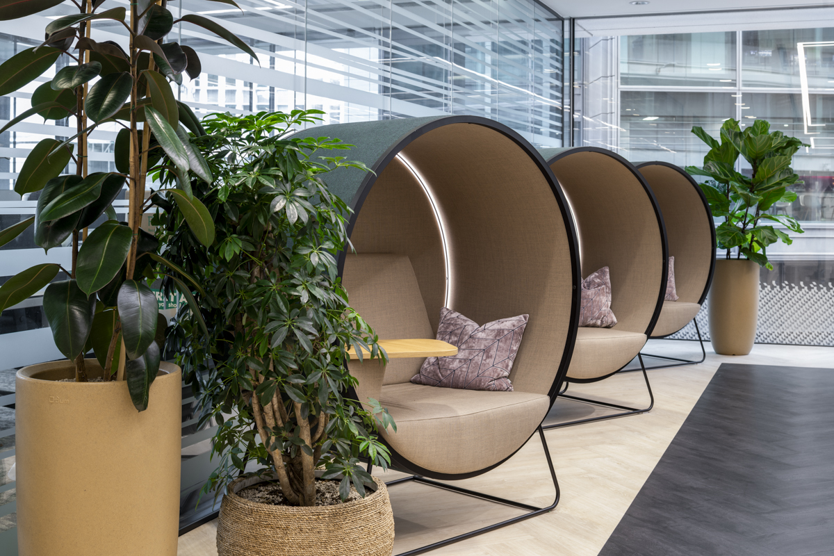 Each floor was designed with dedicated breakout, collaboration, and destination spaces to foster communication and creativity. A key part of the solution came from Connection Kuppel pods, which were specified to deliver personal workspace solutions within the open-plan layout.